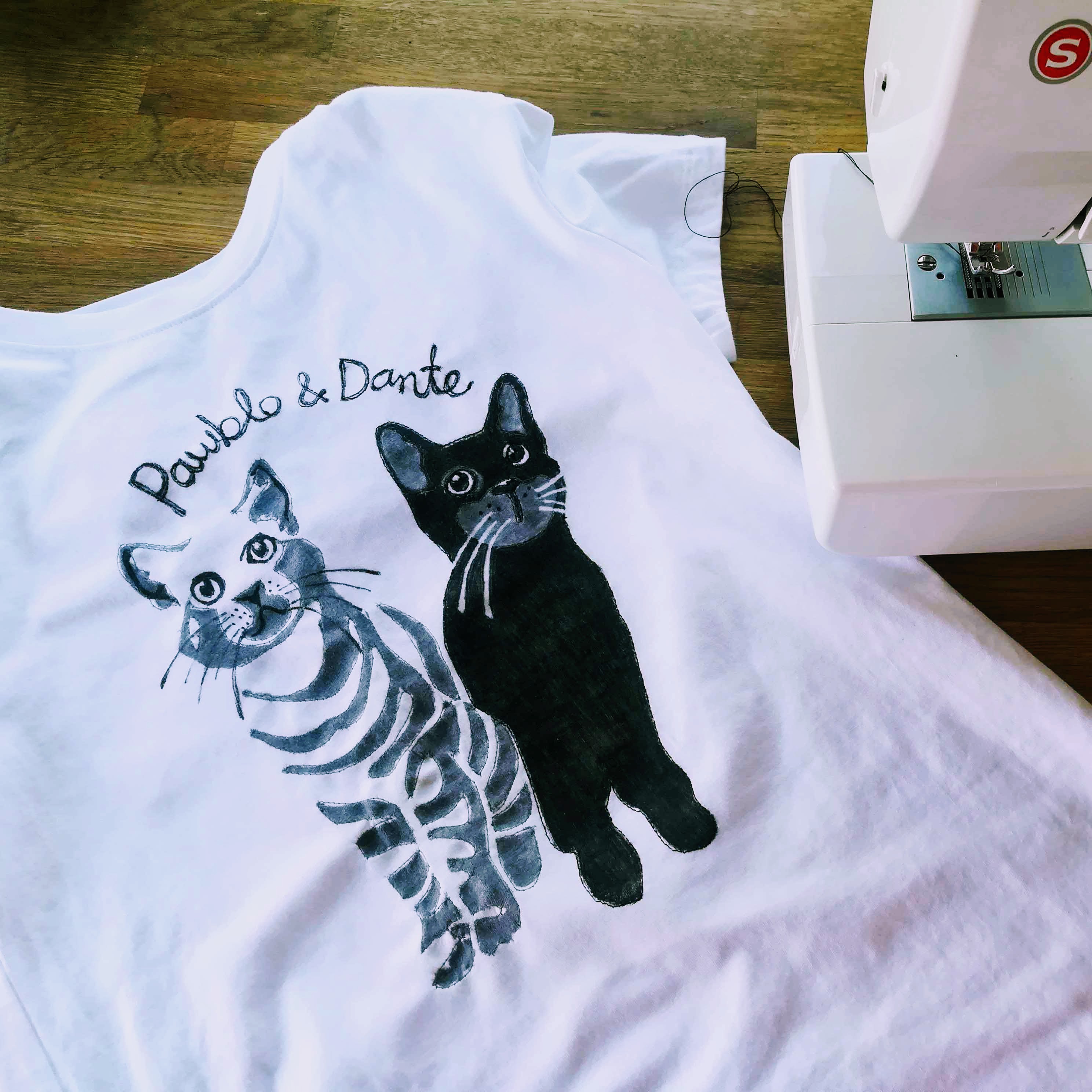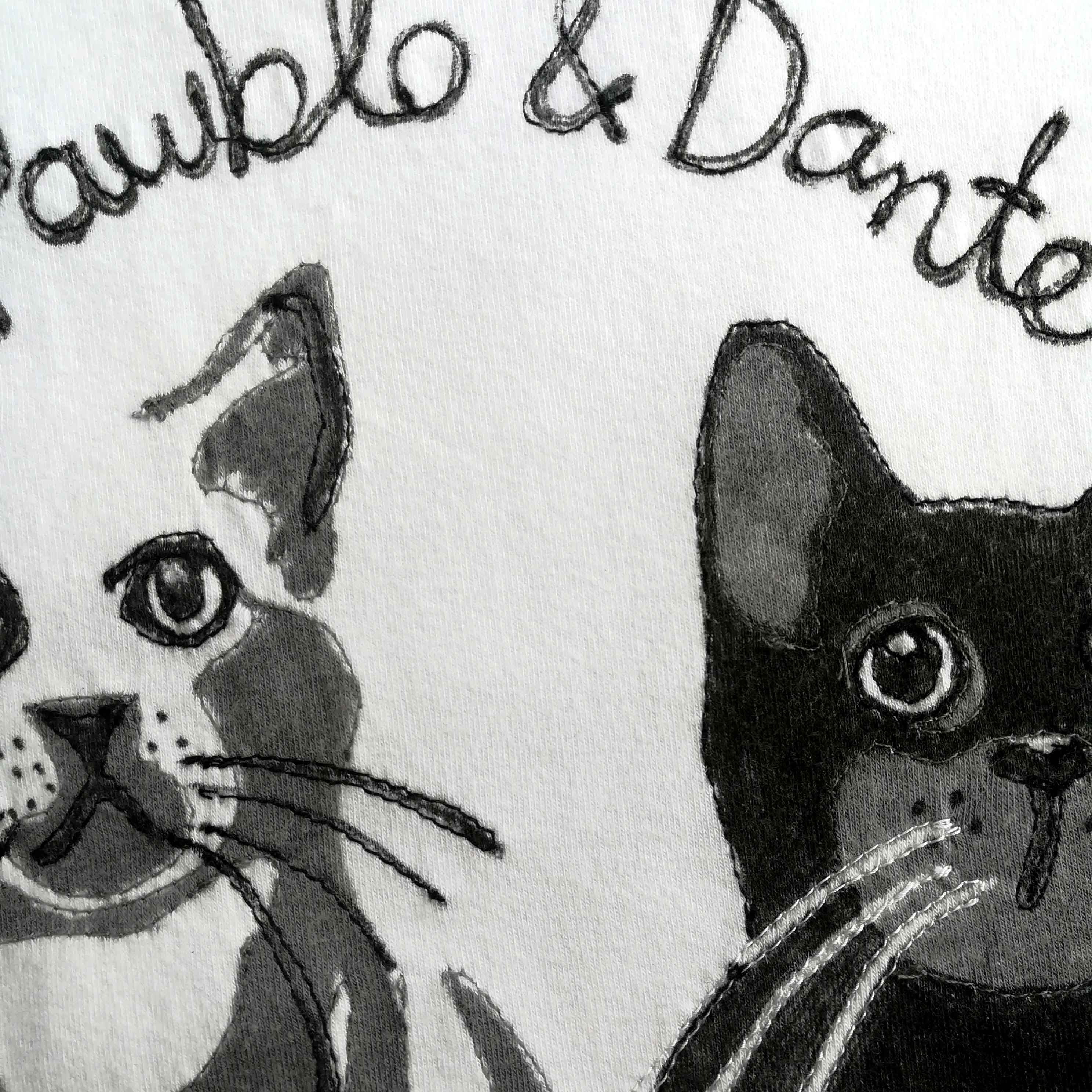The 2 amigos couldn’t be more different; equally beautiful but opposing looks and forces. This awesome contrast is represented in this white tee using black and gray fabric markers combined with both black and white stitching.